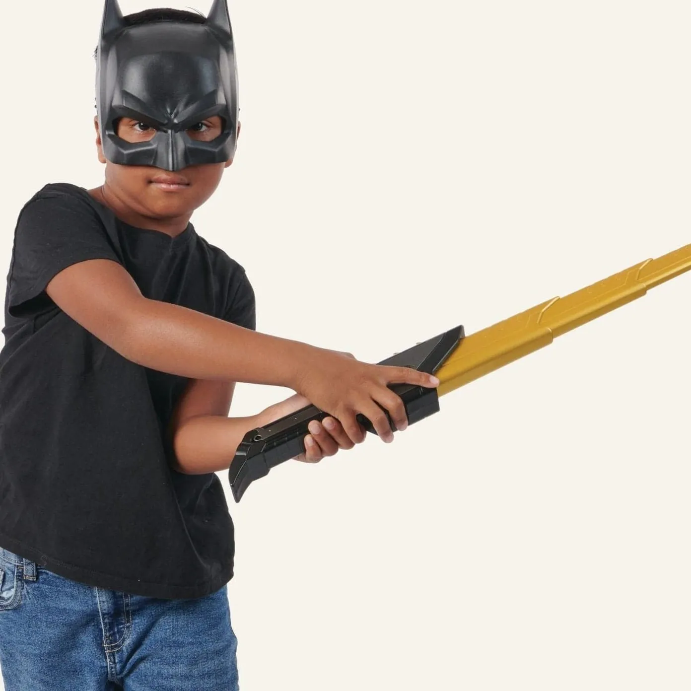 Set Batman Ninja mač i maska pretvara svako dijete u junaka Gothama. Mač se produžuje do 61 cm jednim potezom, savršen za borbe i avanture. Maska čini igru autentičnijom, a djeca mogu smišljati vlastite priče.
