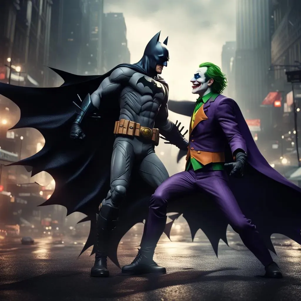 Pod neonskim svjetlima Gothama Batman se suočava s Jokerom. „Nikad ti nije dosta kaosa, Jokere?” promrmlja Batman. Joker se nasmije: „Kaos je moj kardio, Šišmišu! Pridružuješ se?” Batman zauzima borbeni stav. „Večeras završavam tvoj pohod u Ace Chemicals.” Joker se cereka: „Zaplešimo, Mračni viteže!”