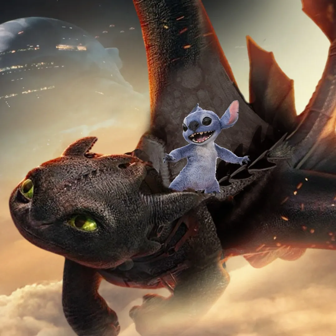 Visoko iznad sjajnih oblaka Bezubica se osvrće na Stitcha koji se drži za njene ljuske. Bezubica: „Spreman, plavi nestaško?” Stitch (ceri se): „Uvijek! Brže, zmaju, brže!” Bezubica zakoluta očima i obruši se. Stitch: „Uhvatimo te odbjegle svemirske loptice prije nego pojedu poglavarovu kacigu!” S povikom jure prema letećim kuglicama, pustolovina zove.
