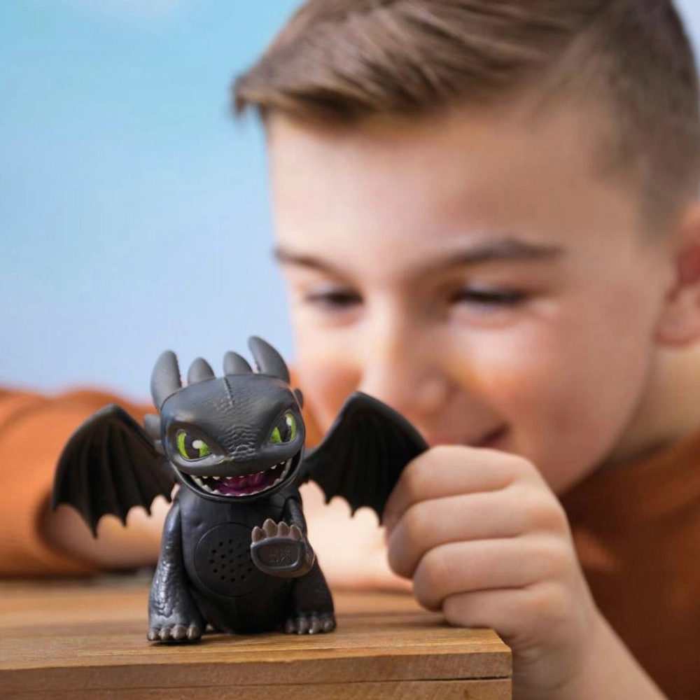 Interaktivna figura Bezubice iz Kako izdresirati zmaja donosi magiju zmajeva ravno u dječje ruke. Pokretna glava, krila i preko 25 zvukova na dodir omogućuju treniranje, igru i izmišljanje vlastitih zmajskih priča. Kompaktna veličina idealna je za putovanja i svakodnevnu igru.