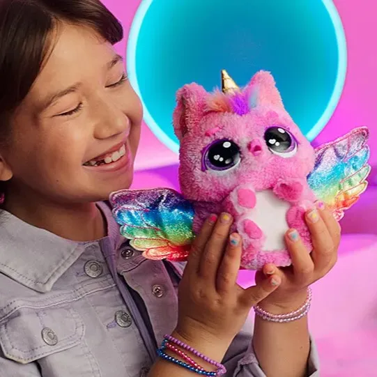 Interaktivni Hatchimals jednorog donosi čaroliju izlijeganja u dom. Djeca brinu o svjetlećem, ljuljajućem jajetu koje reagira na dodir i zvuk. Kad dođe pravi trenutak, pojavljuje se magla i dugine boje, a iz jajeta izlazi sjajni jednorog s pokretnim krilima i više od 100 zvukova za beskrajne priče.