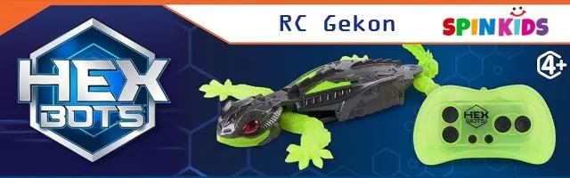 HEX BOTS RC Gekon koji se penje po zidovima daljinski je upravljani robot koji juri po podu i penje se po glatkim zidovima baš kao pravi gekon. Silikonski udovi i svjetleće oči svaku avanturu čine stvarnom, a jednostavan daljinski omogućuje djeci stvaranje prepreka, utrka i noćnih misija.