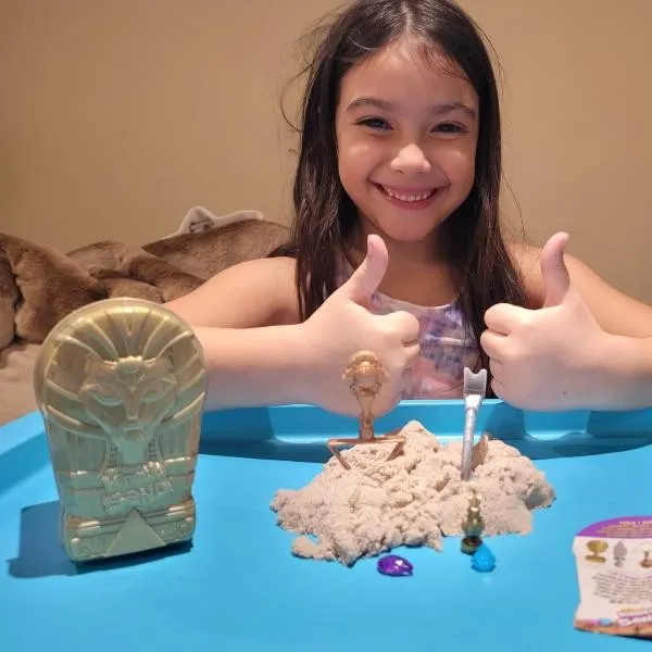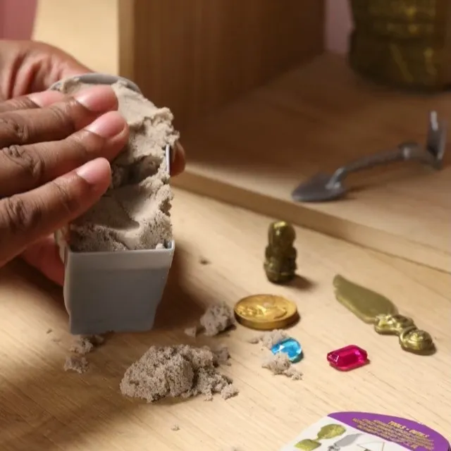 Kinetic Sand Mala Set Mumija pretvara djecu u arheologe koji kopaju kroz 170 g čarobnog pijeska i otkrivaju dragulje, zlatnik i tajanstvenu mumiju. Pijesak se nikada ne osuši i može se oblikovati u piramide ili ruševine za beskrajne avanture i maštu.