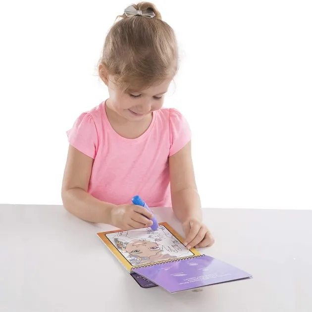 Otvorite list s slikama, napunite olovku vodom i zabava može početi. Mokra područja će se obojati, a crno-bijele slike će se magično pretvoriti u prekrasno obojene. Nakon što se površina osuši, ponovo se pretvaraju u crno-bijele. Proces se može ponavljati. Proizvod sadrži list na temu bajke.Prikazati