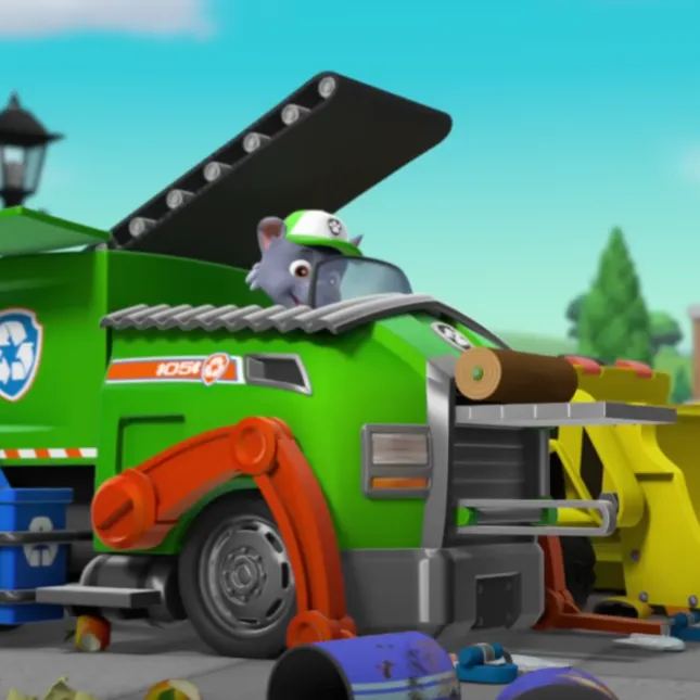 Pokraj spremnika za reciklažu u Adventure Bayu Rocky provjerava komande svog kamiona. „Idemo razvrstati ovo smeće!” zalaje veselo. „Ne bacaj, iskoristi!” zagrabi pokvarenu igračku. „Rocky, stvarno si zakon!” zove Skye odozgo. „Uskoči, Skye! Moramo očistiti igralište prije parade!” odgovara Rocky.