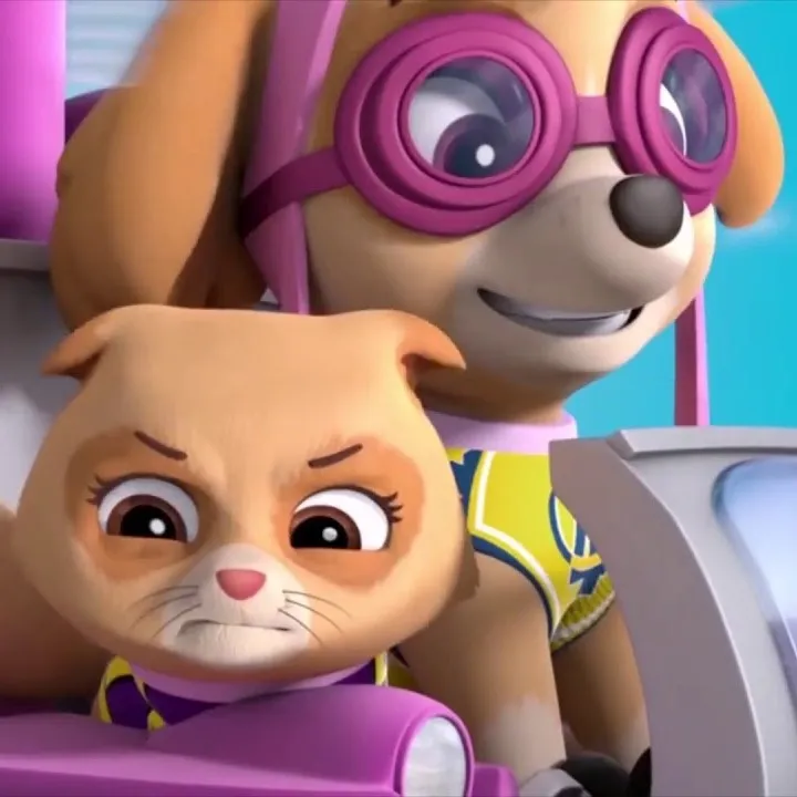 U vozilu Psića u ophodnji Skye podešava naočale. „Spremna za polijetanje, maco?” nasmiješi se. Mačka kimne, koncentrirana. „Pazim na svaku opasnost!” Skye namigne: „Samo mi nemoj ostaviti dlake na sjedalu!” Zajedno se nasmiju, a Skye kaže: „Idemo spasiti pačiće kraj jezera - nijedna misija nije premala!”