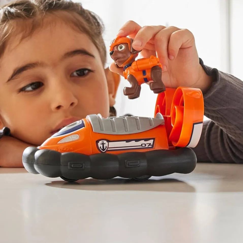 Paw Patrol spasilački čamac Zuma omogućuje djeci da prožive uzbudljive vodene i kopnene misije spašavanja kao u crtiću. Set sadrži vozilo na kotačima, Zuminu figuricu spremnu za akciju, rakuna za spašavanje i pravi izbacivač spasilačkog koluta za autentičnu igru.