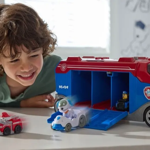 Veliko akcijsko vozilo Paw Patrol svaku igru pretvara u spasilačku avanturu. Opružna vrata, tri lansirne rampe i skočni ekran za misije nude bezbroj mogućnosti igre. Unutra stanu Robo pas i svi omiljeni psići s autićima, baš kao u crtiću.