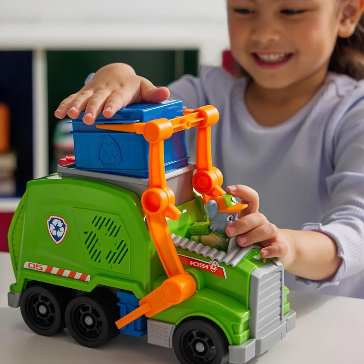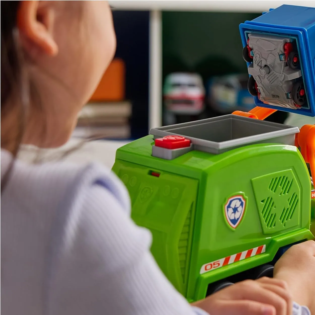 Paw Patrol Crush 'N' Roll reciklažni kamion s Rockyjem omogućuje djeci da „smeće” pretvore u mini vozila, baš kao u omiljenim epizodama. Set sadrži Rockyjevu figuricu, šareni reciklažni kamion, viličar i zgužvani spremnik koji postaje mini autić. Djeca mogu staviti Rockyja, upravljati viličarom i krenuti na reciklažne misije pune mašte i avanture.