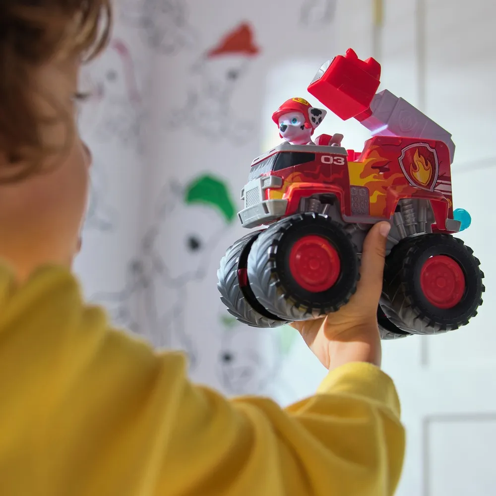 Marshallovo vatrogasno vozilo iz Paw Patrola donosi uzbuđenje iz Adventure Baya ravno u dječju sobu. Ogromni kotači i prava ispaljivačica omogućuju svladavanje svake prepreke i ispaljivanje pjenastih projektila za spas dana. Marshallova figurica sjeda za volan, spremna za akciju.