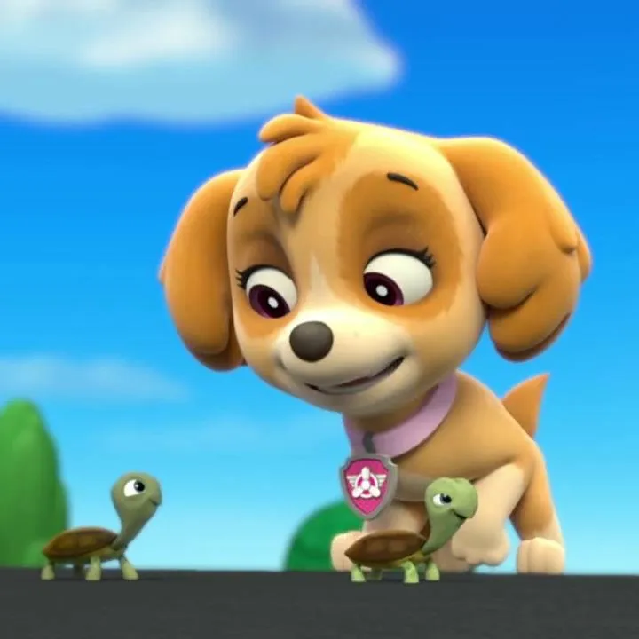 Uz vijugavu stazu Adventure Baya, Skye se naginje nad dvije male kornjače. „Ne brinite, pomoći ću vam prijeći!” veselo klikće. Jedna kornjača polako trepne. „Nadam se da se ne bojite visine?” smije se Skye. „Idemo kući - Psići u ophodnji na djelu! Kornjača misija kreće!”