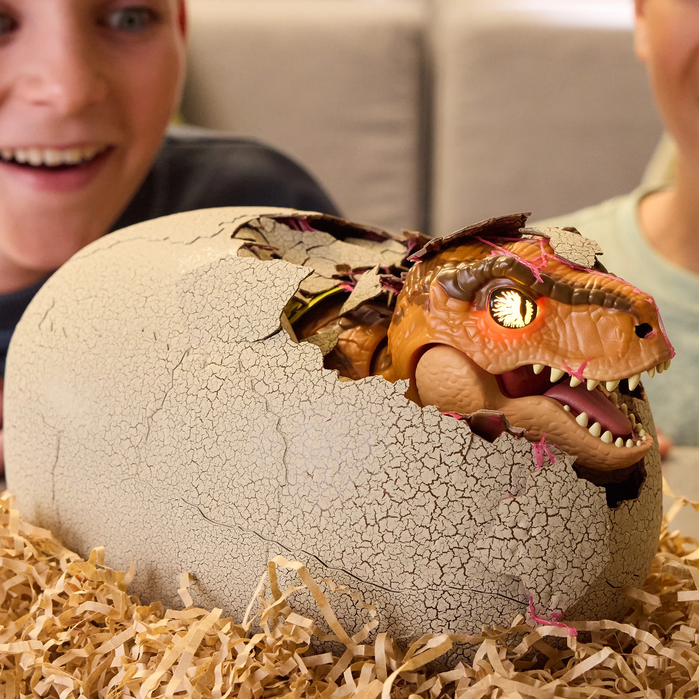 Primal Hatch interaktivni T-Rex donosi uzbuđenje Jurassic Worlda ravno u tvoje ruke. Kucni po ogromnom jajetu i gledaj kako tvoj dinosaur probija sluzavu opnu – baš kao pravi. Oči mu svijetle i mijenjaju boju, više od 100 zvukova i pet igara – svaka igra novo je iskustvo.