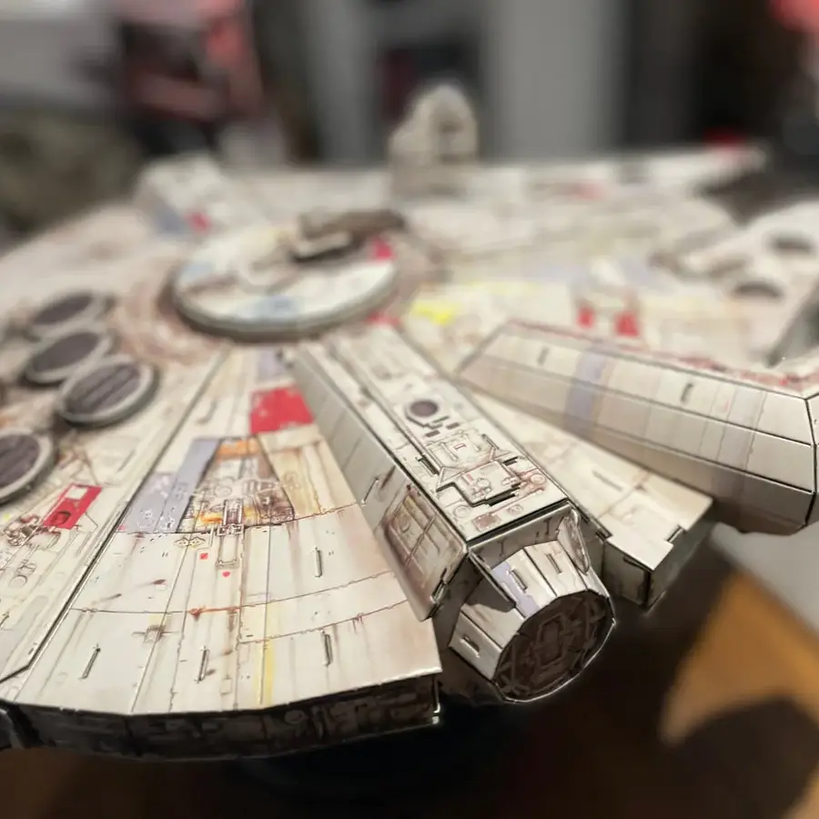 Pretvaramo dnevni boravak u galaktički hangar i pažljivo slažemo svaki detalj. Zajedno divimo gotovom Falconu, spremnom za izlaganje i nove priče.