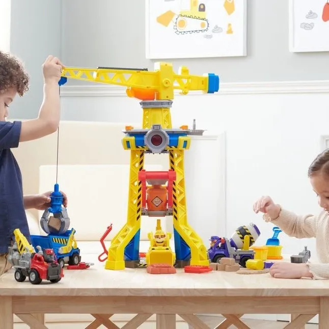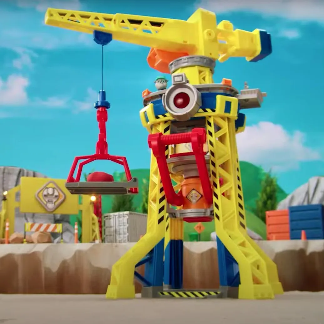 Set Rubble & Crew interaktivna dizalica donosi građevinsku avanturu s ogromnim tornjem od 60 cm, rotirajućom rukom i funkcionalnom kandžom. Djeca mogu oblikovati pijesak u cigle, voziti Rubblea dizalom i oživjeti scene iz omiljenog crtića Psići u ophodnji. Svjetla i autentični zvukovi čine svaku izgradnju posebnijom.