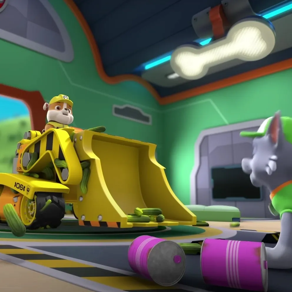 U užurbanoj radionici Builder Covea Rubble se smiješi iz bagera. „Spreman za kopanje, Rocky?” Rocky namješta kapu: „Neka sve zasja - reciklaža na djelu!” Rubble namigne: „Kladim se da ću završiti prije nego što ti sortiraš limenke!” Obojica se nasmiju, a Rubble kaže: „Popravimo garažna vrata prije nego što stigne gradonačelnica Greatway!”