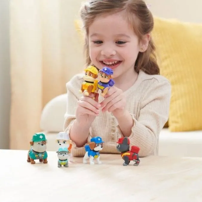 Okupljamo svih sedam psića i stvaramo užurbano gradilište u Builder Coveu—svatko ima svoju ulogu, a svaka figurica donosi posebnu vještinu našem timu.