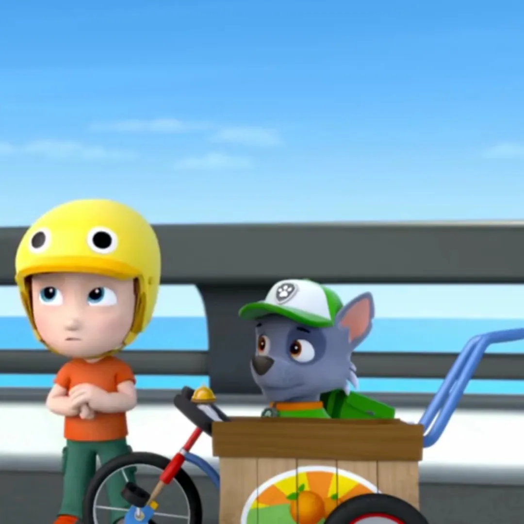Na mostu Alex zabrinuto gleda Rockyjev tricikl prepun voća. „Hoćemo li stići prije piknika gradonačelnice?” pita. Rocky se smije: „Zeleno znači idemo! Zgnječene banane recikliram.” Alex se nasmije: „Samo nemoj reciklirati moju kacigu!” Zajedno kreću spasiti piknik od nestašice voća.
