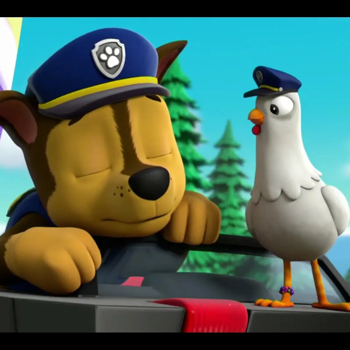 Uz policijski auto u Adventure Bayu, Chase uzdahne: „Još jedan slučaj riješen. Zar ne, Chickaletta?” Chickaletta zakokodače i kljucne značku. „Kokoda! Uvijek spremna, policajče!” Chase se nasmije: „Hoćeš li me ovaj put nadmudriti?” Chickaletta namigne: „Kokoda, prihvaćam izazov!” Krenu zajedno tražiti izgubljenu zlatnu zviždaljku prije nego što gradonačelnica Goodway primijeti!