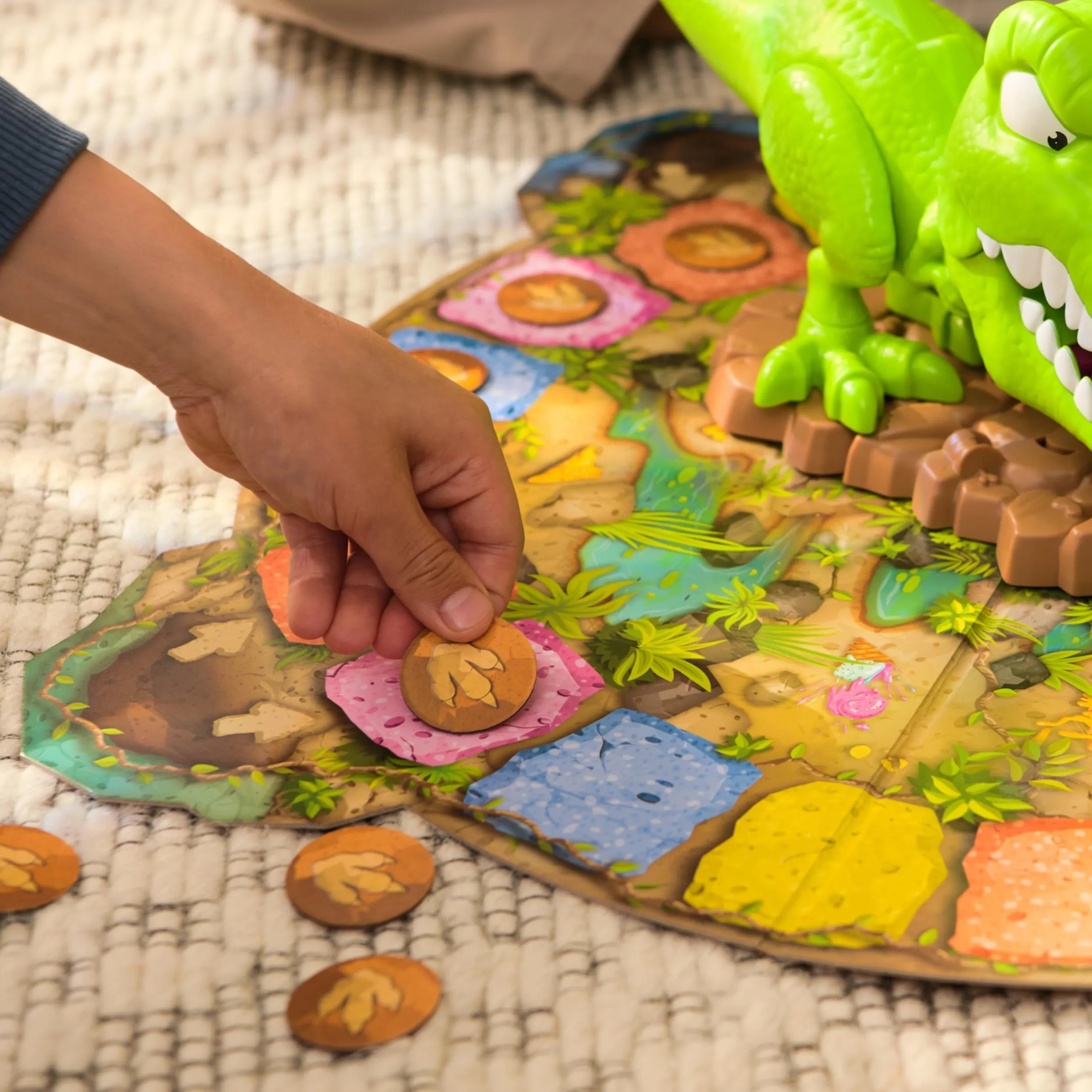 Organiziramo prapovijesni lov na zalogaje, žetone skrivamo po sobi. Zajedno vodimo dinosaura do blaga, a svako otkriće slavimo kao timski uspjeh.