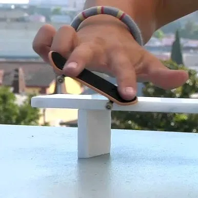 Na narančastom stolu Maks postavlja prste na Tech Deck. „Kladim se da nećeš napraviti čisti grind, Ema!” zadirkuje je. Ema se nasmiješi, pogleda ogradu i zaleti dasku. „Gledaj i uči, Maks!” smije se dok joj prsti klize po ogradi. „Pobjednik smišlja sljedeću ludu prepreku!”