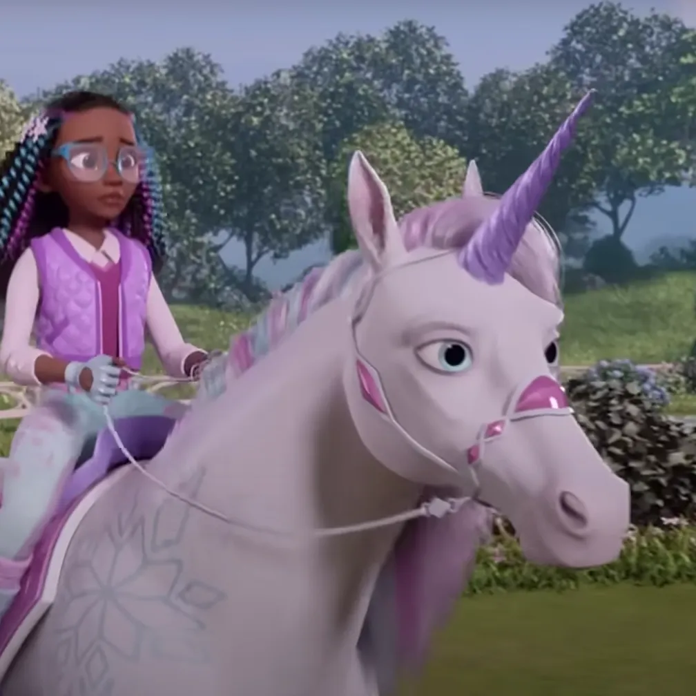 Na blistavoj livadi Otoka jednoroga Layla namješta naočale na Glacieru. „Spremna za malo čarolije, Glacier?” smiješi se. Glacier zaigrano frkne i zamahne sjajnom grivom. „Pronađimo izgubljeni Ledeni kristal prije zalaska!” Layla se smije: „Utrka do slapova—tko zadnji, taj je nespretno ždrijebe!” Avantura spašavanja čarolije upravo počinje.