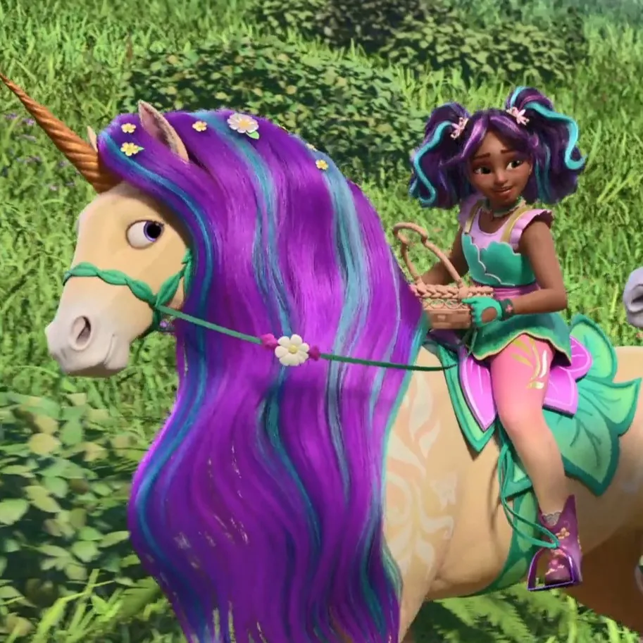 Na livadi punoj cvijeća pokraj Unicorn Academy, Ava se smije s košaricom u ruci. „Star, hoćemo li danas naći rijedak mjesečev cvijet?” Star zamahne sjajnom grivom. „Samo ako ne pojedeš sve grickalice, Ava!” Ava se nasmije: „Dogovoreno! Pronađimo ga prije nego se opet sakrije!” Kreću zajedno u čarobnu potragu.